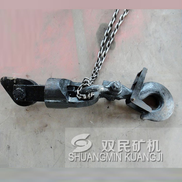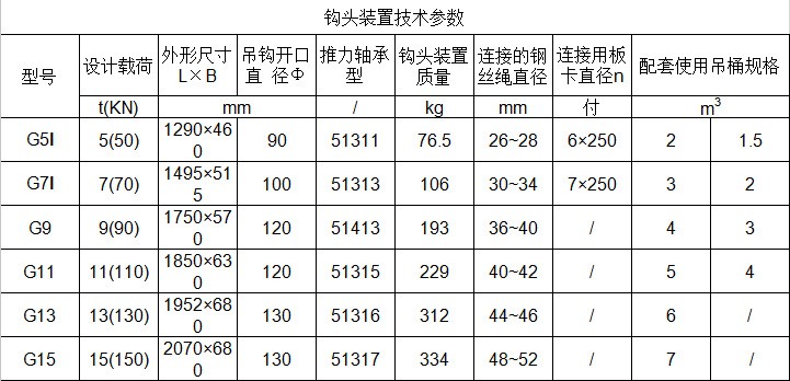 鉤頭及連接裝置,簡稱為鉤頭裝置。 該產(chǎn)品結(jié)構(gòu)簡單,使用性能單一。零件全部由鍛件加工而成,鋼絲繩連接采用了兩種型式,其中5t、7t采用不偏心護(hù)繩環(huán),板卡連接;9" />