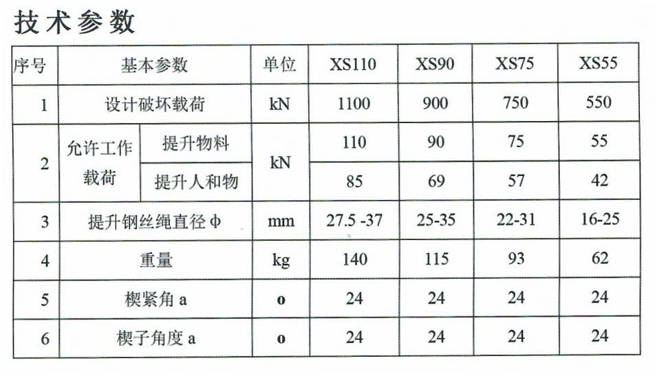 鑿井懸吊天輪是按JZ系列鑿井絞車鋼絲繩最大靜張力分別為5t(50kN),10t(100kN),16t(160kN),25t(250kN),40t(400kN)進(jìn)行配套設(shè)計(jì)的。