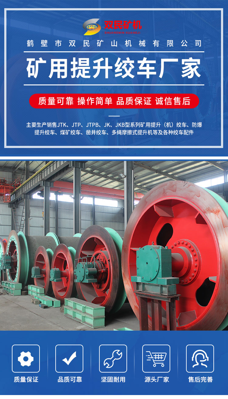 鶴壁市雙民礦山機(jī)械有限公司是以制造大型礦山提升設(shè)備,電器成套自動化控制系統(tǒng)為主的科研型高科技企業(yè),是國家礦山專用設(shè)備及配件產(chǎn)品定點生產(chǎn)單位。主要生產(chǎn)、銷售JTK、JTP、JTPB、JK、JKB、JKM、JKMD型系列礦用提升絞車、礦井提升機(jī)、多繩摩擦式提升機(jī)、JZ型