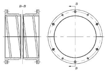 (3) 改進軸瓦加工工藝,去掉原有兩瓣軸瓦之間的縫隙,避免天輪在正反方向運轉(zhuǎn)時對固定螺栓的沖擊。