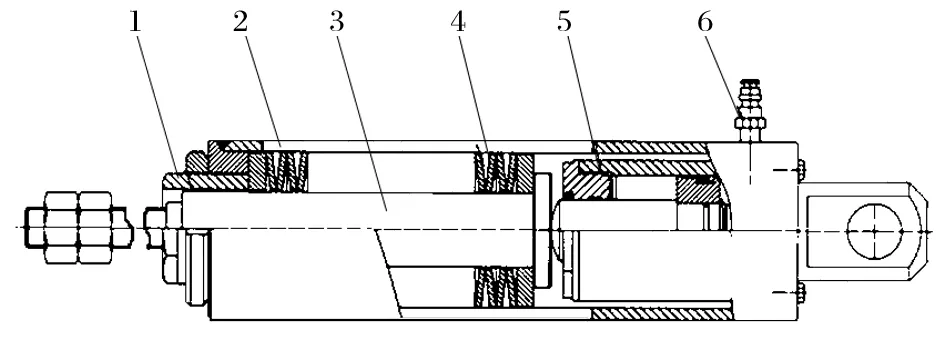 1.螺紋內(nèi)套筒 2.外套筒 3.驅(qū)動(dòng)器拉桿 4.碟形彈簧 5.千斤頂 6.管接頭