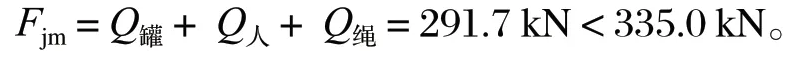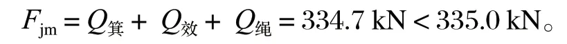 靜張力 Fjm 小于設(shè)計(jì)值,強(qiáng)度校驗(yàn)合格。