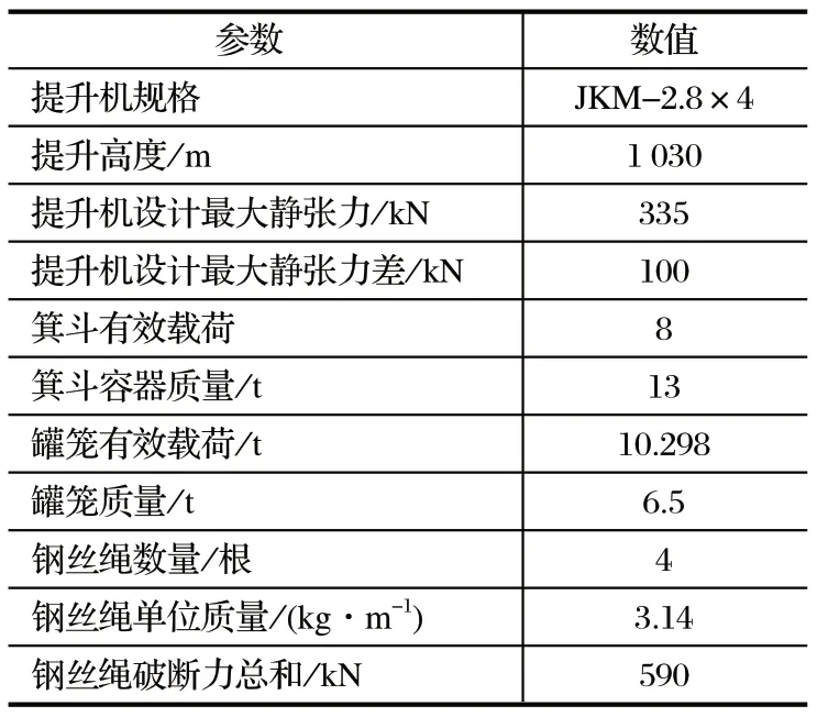 表1 某礦多繩摩擦式提升機(jī)參數(shù)